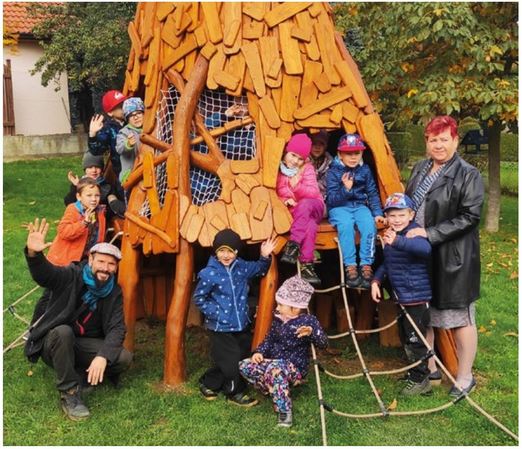 Školka doplatila zbylých 60% ceny, nový prvek byl poté ručně vyroben z akátového dřeva a přivezen na zahradu školky na Malém náměstí, kde dělá dětem už měsíc radost. Jedná se o unikát, neboť se jedná o jeden ze dvou těchto prvků vyrobených pro český trh. „Věřím, že se dětem bude Mraveniště líbit a budou si ho moc užívat,“ dodala ředitelka školky.